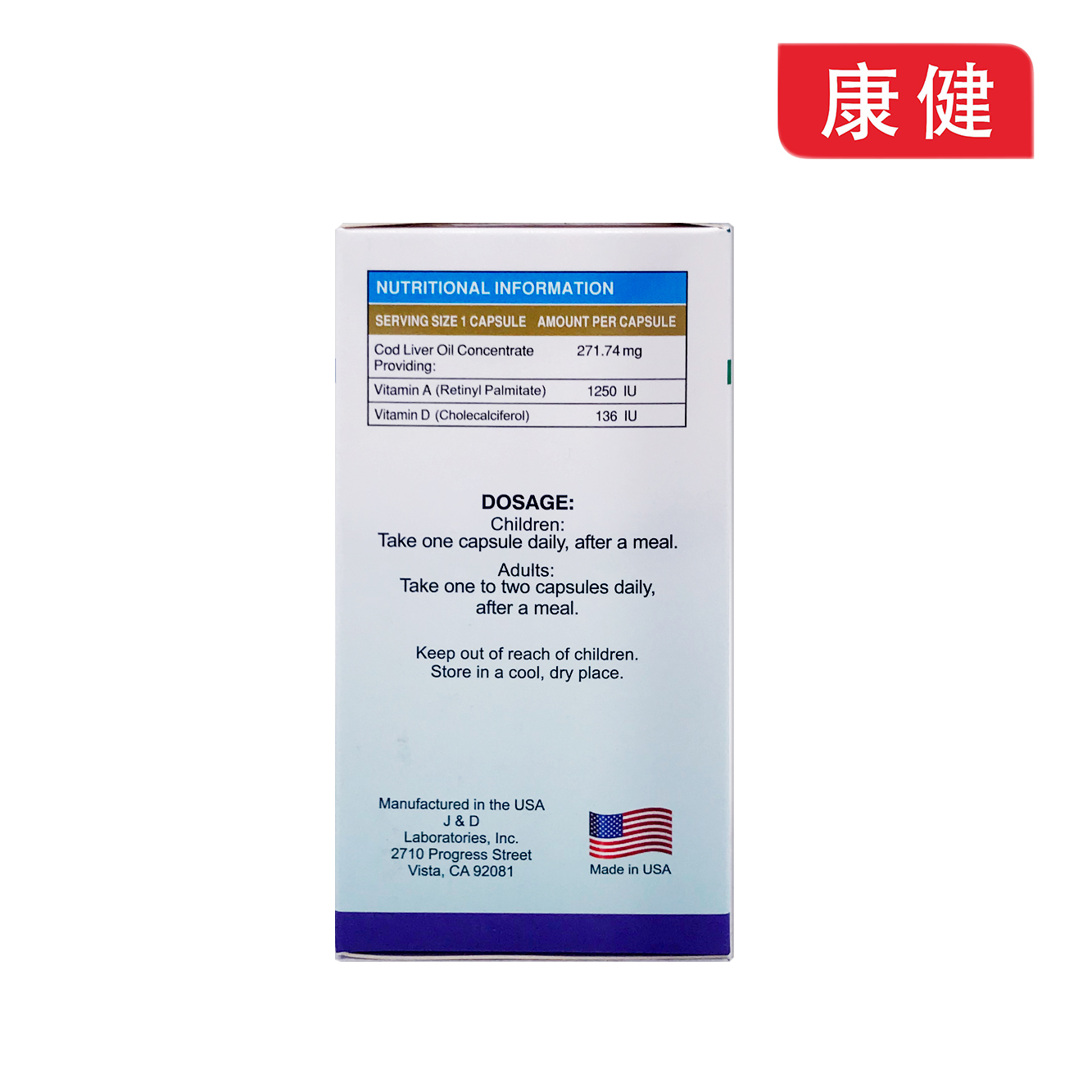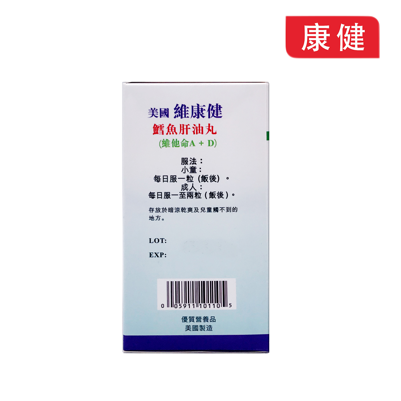 美國【維康健】鱈魚肝油丸 維他命A+D 100粒