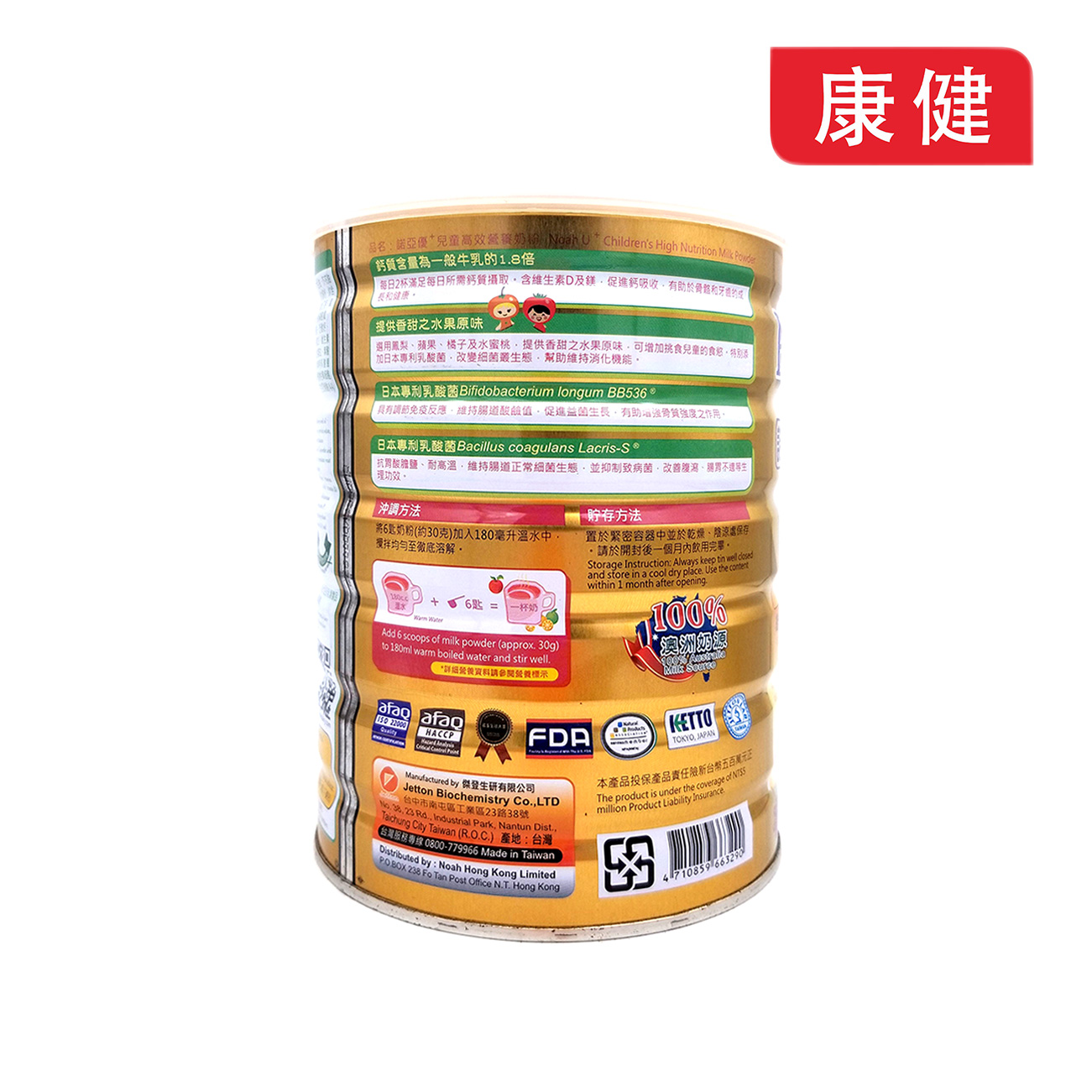 【諾亞】優+兒童高效營養奶粉 鮮果配方 雲呢嗱味 900g