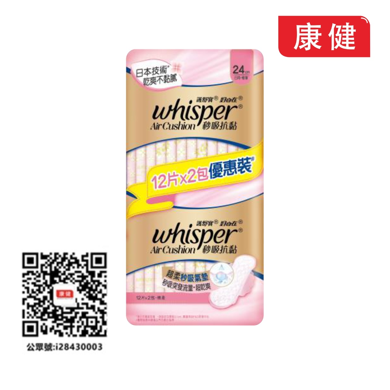 【護舒寶】秒吸抗黏衛生巾日用24cm 24片優惠裝